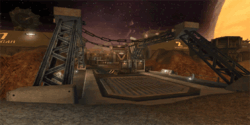 - After spawning on the planet's surface the attackers must continue afoot. The defending team will be waiting on the other side of a bridge, nearby the gate's switch. The attackers can use a pipe to the right of the bridge, or the supports of the bridge itself to diverse the defenders' attention. The switch is located inside a hangar on the right side of the clearing.