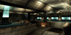 - After the panel has been destroyed the door facing the panel will open. This door leads to a very short corridor with another door on the other side. Behind those doors is a room with a panel in the middle. The attacking team must reach that panel to complete this objective. Since the corridor is so short and the room with the panel isn't very large, it can be reached with 2 simple dodge-jumps.