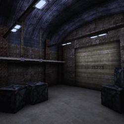 The attackers start in a cavern near the base, and have planted explosives near a discovered wall. The base itself is pretty linear, with just a single U-shaped passage spanning from the cavern to the cargo bay, including a bridge over a lava pool. The cargo bay area has several crates holding several items, many of which are pretty tricky to obtain. Finally, behind a pair of blast doors, there's the tank which must be destroyed.