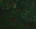 Spores are creatures that defend the planet Acheron from too much damage. They are seen at the end of the Acheron mission. They are round and can fly. They are colored red and are extremely hard to kill, although in the code it is stated that they have only a single point of health. They are spawned by the planet after something very damaging happens to it. Spores have a single purpose of killing anything they find and that don't belong to the planet. Spores can't attack from long range, but will do that once they come to the melee range. They can also swim, but they swim only a half as fast as they fly.