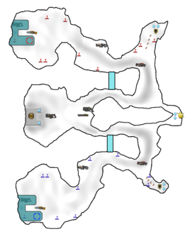 • Because of the many narrow passages, it is hard for just 1 carrier to make it to the other team's base. Always have a teammate nearby to enable the use of the shortcuts.