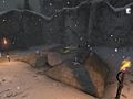 Inspired by the Canadian weather, it is no surprise that this map features dense fog and heavy snowfall. What's more surprising, is that it results in a rather cramped Bombing Run arena as well. The Ice Fields' rocky cliffs give shape to narrow canyons (for BR standards), and passing through them can be quite a task. There are a few shortcuts that can be used, as well as plenty of ledges, which add a bit of a Z-Axis to the map's gameplay. The Bomb spawns in the center region of the map, on a clearing. The teams must then pass through a series of canyons to reach the other team's base (which are both on open fields as well). The Goals are on the top floors of the bases and can be reached via an elevator. There is no terminal consequence for jumping through the goal in this map.