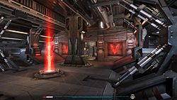 The Steel Gauntlet is a direct sequel to The Iron Gauntlet from Unreal Tournament. The layout remained the same, but the new high tech look is totally different, especially the outside parts surrounded by team colored force fields. Instead of the lava pool, there is now a pit with lasers. There is no escape out of it. This is the only unsymmetrical CTF map in the game.