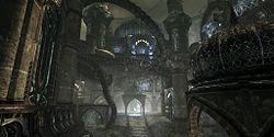 The broken strata and organic growth of these ruins mark the untold history of the Necris rise to power on Omicron. Just like the Prophet's philosophies during the Great Awakening, the Necris nanotech first spread out to cover existing architecture, and then used it as a foundation upon which to form its own.