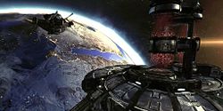 Izanagi's Orbital Jumpgate technology forever changed the face of interstellar life. Now, the constant traffic of trade, transport, and vacationing tourists requires the support of small orbital stations, such as this one, on the leading edge of every Jumpgate throughout the galaxy.