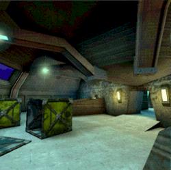 The interior of a high speed cruising ship, composed by two areas connected by three passages. The two lateral passages intercept themselves in the middle with another passage, while the mid passage has no connection with any area except the front and rear ends. Also, the rear end has several crates acting as both cover and (in one case) weapon holding. All in all, a very basic map; very fitting, as it's the first map of each Ladder.