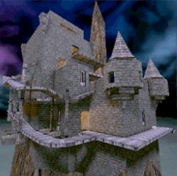 A castle sitting at the top of a mountain, surrounded by narrow wooden walkways, and with few spaces to maneuver. Its areas of interest are Outside, Upper room, Main room, Lower room, Pit room, Lower hall and Window hall.