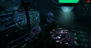 Since the cybernetic revolution, the Drakk terraformed their home planet and changed almost everything to look cybernetic, plastic or metal. They seem to like cyan, dark blue and black colors, while red is used to mark blocked entrances. High levels of radiation is found in their territories; the Drakk also tend to create statics that block radio signals - either by purpose or that is a form of their own communication.