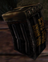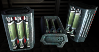 Unreal - Return to Na Pali has the same Eightball cans as in Unreal, but as it adds a new type of a Rocket Launcher, there is additional ammunition for them. It is never officially named. In the code it is named simply as RLAmmo (Rocket Launcher Ammo), and when picked up, it simply says "You got 10 rockets". It is believed that the most precise name for it would simply be "Rocket Pack". As the Rocket Launcher of Return to Na Pali is very powerful, Rocket Packs are very useful. They are found in UMS drop boxes throughout the mission. They appear to be light-weight as the total ammo capacity of the Rocket Launcher is 100, so it takes even 10 Rocket Packs to fill the Rocket Launcher with ammo. As the rockets generally hit more than the Eightballs, Rocket Packs are as valuable as cans of Eightballs. Rocket Packs are found a lot less frequently. They are not animated, but have the words "AIM AWAY FROM FACE" written on them.