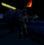 Inside the UMS Prometheus the marines will start coming down and attacking you, be prepared as there will be a bunch of them. If you stay inside the ship they're going to go inside to find you anyways, so it's better to charge at them with caution. The Rocket Launcher and Grenade Launcher are useful for fighting them. The marines will spawn at each end of the ship, and the middle sides too.