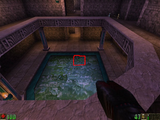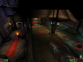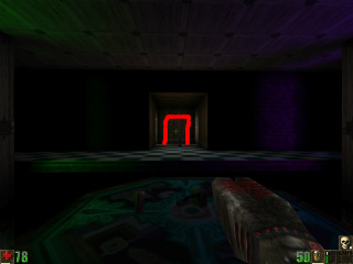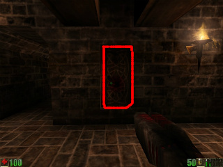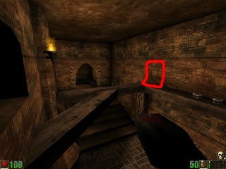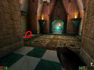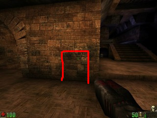 Go through the circled wall. No one will ever see you there! :)