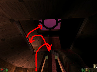 Either deselect your boots and go up lift and jump on the rail and try to jump to the ceiling or follow the arrows using 3 jumps.