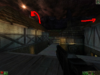 The arrow on the left leads to a hole in the roof, and the arrow on the right will lead you to the picture below.
