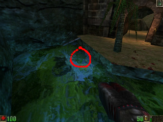 Swim in the circled area to find a tunnel system. Swim through that and their should be an opening on the right.