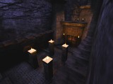Sacred Passage - Cóż, mogło być gorzej. Niby nie ma po czym, ale jest szansa na wypoczynek, tudzież odetchnięcie świeżym powietrzem. Tylko te ładne drzwi za nic nie chcą się otworzyć... i raczej tego nigdy nie zrobią. Trzeba je obejść, bo tam w środku korytarza jest materiał treningowy do strzelania, a ten właśnie jest bardzo niecierpliwy. Da się podpłynąć bajorkiem, którego pilnuje wyjątkowo wredna rybka. Jeśli sobie z nią nie poradzisz, to idź lepiej pograć w Quake'a... no. Po drugiej stronie korytarza też jest ciekawe miejsce, najpierw je zalicz zanim wejdziesz do korytarza - warto. W samym korytarzu też nie jest źle - całkiem zmyślny basenik. Ale woda trochę brudna, mydła brak, więc nici z kąpieli. Z bólem serca (tudzież innych części ciała) musisz iść dalej. Głowa do góry i biegiem dalej.