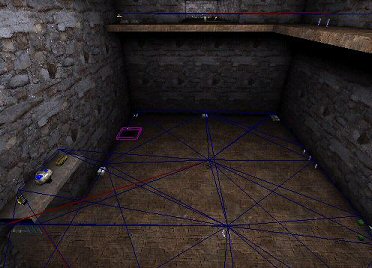 Kiedy robimy jakąś mapkę do DM albo inną w której biorą udział Bot'y, niezbędne jest rozmieszczenie tzw. węzłów, które wyznaczają możliwe kombinacje tras poruszania się Bot'ów kiedy nic się nie dzieje. W przeciwnym wypadku będą one poprostu stały w miejscu, tudzież przechadzać się spokojnie tu i tam, dopóki ktoś nie najdzie. Częściowo takimi węzłami są poprostu rzeczy do zbierania: bronie, amunicja, apteczki, zbroje itd. jednak na więkrzych przestrzeniach należy dodawać takie węzły osobno, pomagają one tworzyć sieć ścieżek. Aktor nosi nazwę PathNode i przedstawia się w ten sposób: ![]() Skoro nasza nieszczęsna mapka ma służyć do grania, to możnaby ją obłożyć w końcu jakimiś bardziej sensownymi tekstutami... ![]() ![]() ... i kiedy już w mapce porozmieszczamy jakotakie przenty jak broń, lekarstwa i oczywiście tam gdzie brakuje to PathNode'y... ![]() to ostatnią czynnością jest przebudowanie mapki oraz zdefiniowanie sieci ścieżek. Służy do tego nasz już ukochany Rebuilder (F8) i w ostatniej zakładce wciśnij przycisk: ![]()