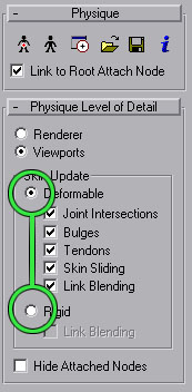 Other Issues There are some other things to watch for when preparing your models due to quirks in Physique. Some of the things are well known to Max users while others may be new, since a lot of things can be 'wrong' with a Physique setup that will not affect cinematic or vertex animation, but will give skeletal animation some problems. Creating a Skeleton Without Biped - This is completely possible, as long as you add the appropriate Dummy objects to the ends of your hierarchies. The exporter will work on any valid hierarchy with a single root. [end of document | back to top] |