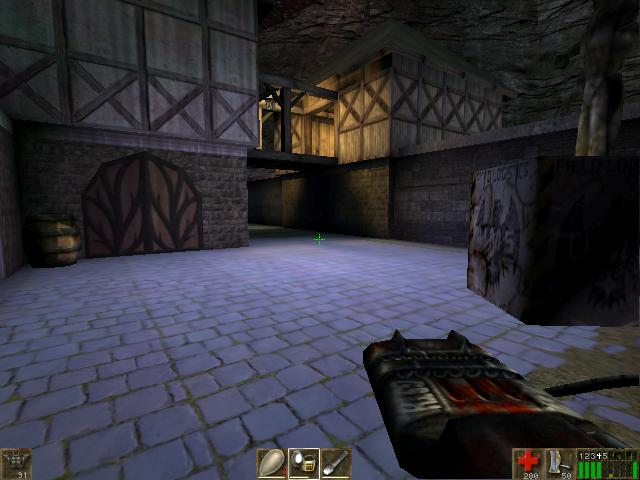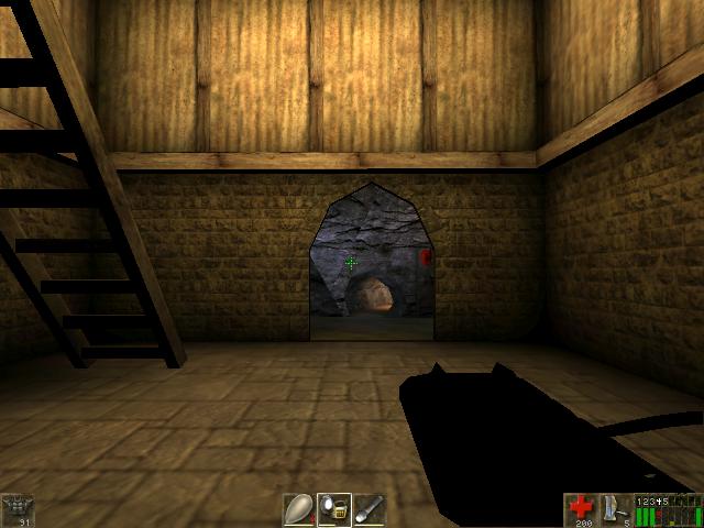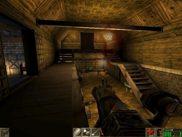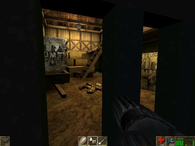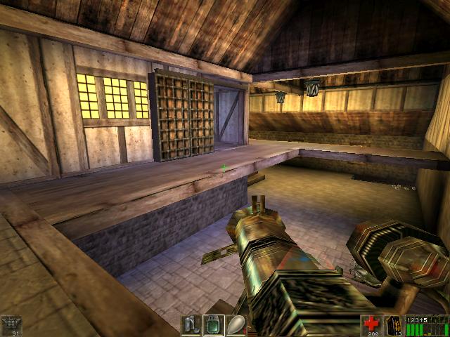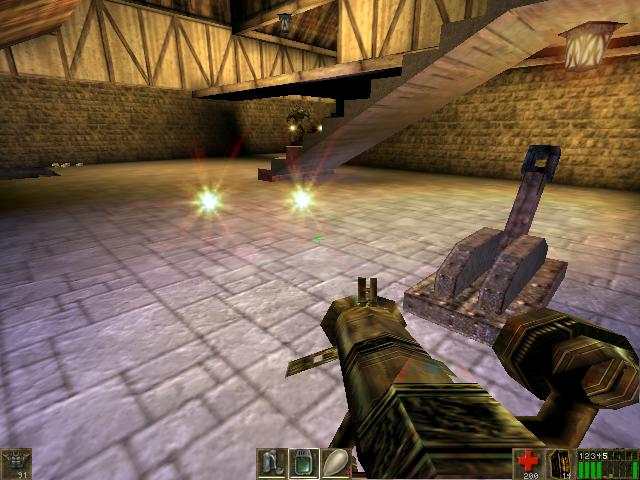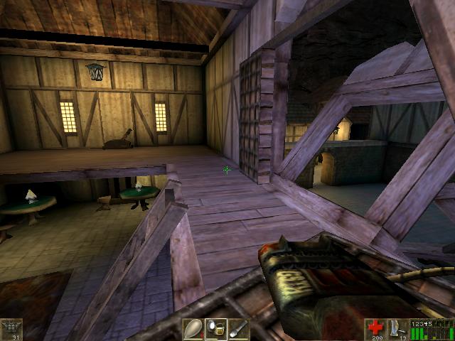 You will be hearing the growls of Skaarj. You can jump over the hay,