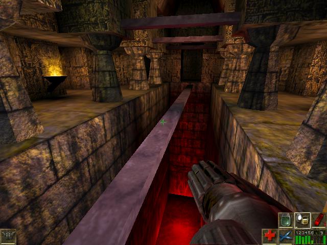 see something over a Plank bridge over Lava.