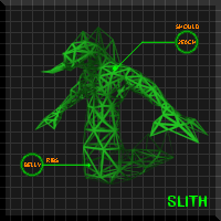 - Description: The Slith, cousins to the Skaarj, spit corrosive acid at you while navigating murky waters. Beware, for the Slith can travel by both water and land, and have been known to chase unwary do-gooders aground where they promptly eviscerate them with razor-sharp, webbed claws.